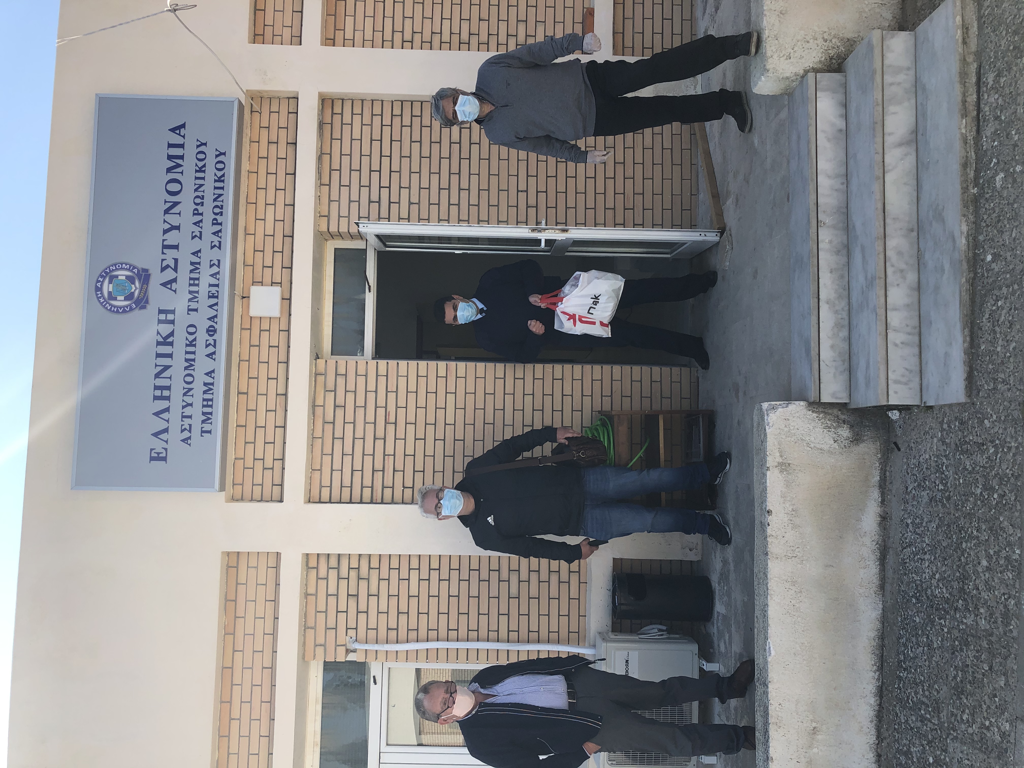 Τις μάσκες παρέλαβαν στις 9/4 ο Πρόεδρος του ΝΠΔΔ “Αριστόδικος” και Εντεταλμένος Σύμβουλος Υγείας Νίκος Πουλόπουλος, καθώς και ο εκπρόσωπος της Επιτροπής Υγείας του Νομικού Προσώπου Γιάννης Αναγνωσταράς, οι οποίοι τις διένειμαν σήμερα μαζί με τον Δήμαρχο Σαρωνικού Πέτρο Φιλίππου στις ακόλουθες υπηρεσίες αναλογικά με τον αριθμό των υπηρετούντων σε αυτές: α) στο Αστυνομικό Τμήμα Σαρωνικού (Γαλάζια Ακτή), β). στον Αστυνομικό Σταθμό Καλυβίων και γ). στο Λιμενικό Τμήμα Παλαιάς Φώκαιας.