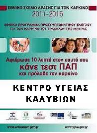 Ο Δήμος Σαρωνικού, σε συνεργασία με το Κέντρο Υγείας Καλυβίων, στο πλαίσιο του Εθνικού Προγράμματος Προσυμπτωματικού Ελέγχου για τον καρκίνο του τραχήλου της μήτρας που υλοποιεί το Υπουργείο Υγείας και Κοινωνικής Αλληλεγγύης, συνιστά σε όλες τις δημότισσες Σαρωνικού ηλικίας 25 – 65 ετών να υποβληθούν σε προληπτική εξέταση (τεστ Παπανικολάου).