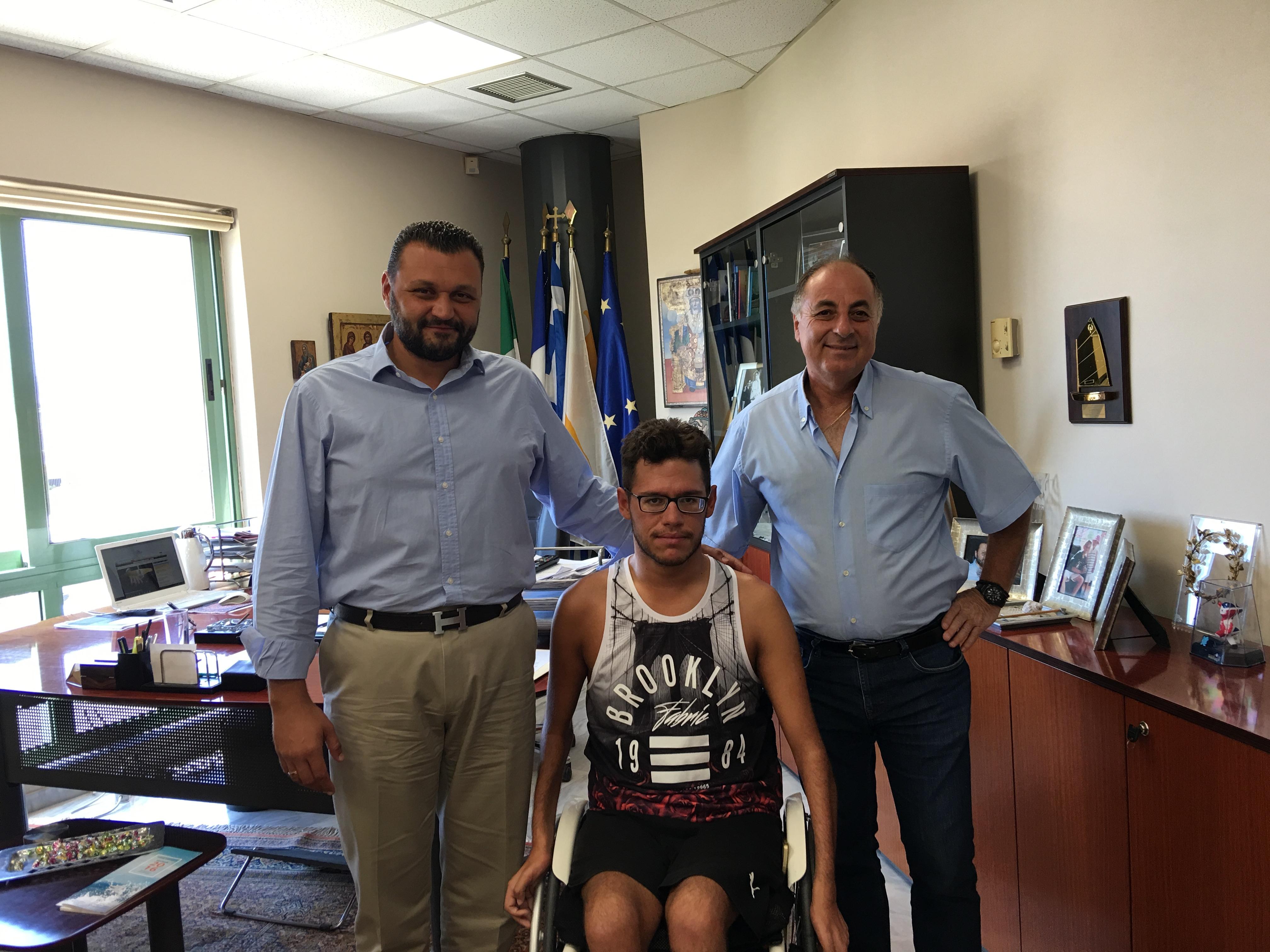 Μετά την θερμή και εποικοδομητική συζήτηση που είχε ο παραολυμπιονίκης την Παρασκευή 26 Αυγούστου στο Δημαρχείο με τον Δήμαρχο Σαρωνικού, παρουσία του Προέδρου της Δημοτικής Κοινότητας της Παλαιάς Φώκαιας κ. Α. Παπουτσή, υπήρξε δέσμευση του Δημάρχου για ουσιαστική στήριξη στη σημαντική προσπάθεια του αθλητή.