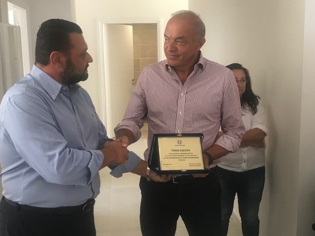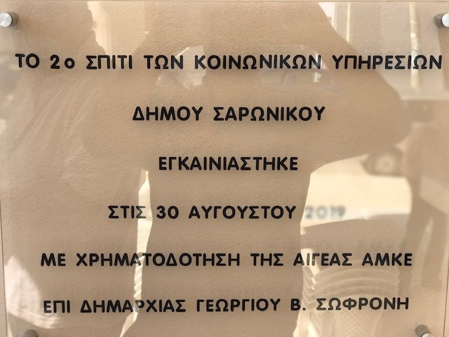 Κατά τη διάρκεια της τελετής των εγκαινίων, ο κ.Σωφρόνης απένειμε τιμητική πλακέτα στον κ. Μαρτίνο την οποία παρέλαβε ο εκπρόσωπος της ΑΙΓΕΑΣ ΑΜΚΕΣ, κ. Βασιλόπουλος για την πολύτιμη στήριξή τους στη δημιουργία των Σπιτιών των Κοινωνικών Υπηρεσιών του Δήμου Σαρωνικού.