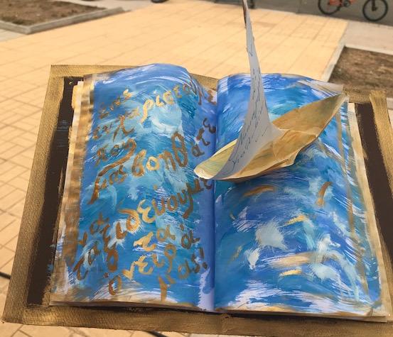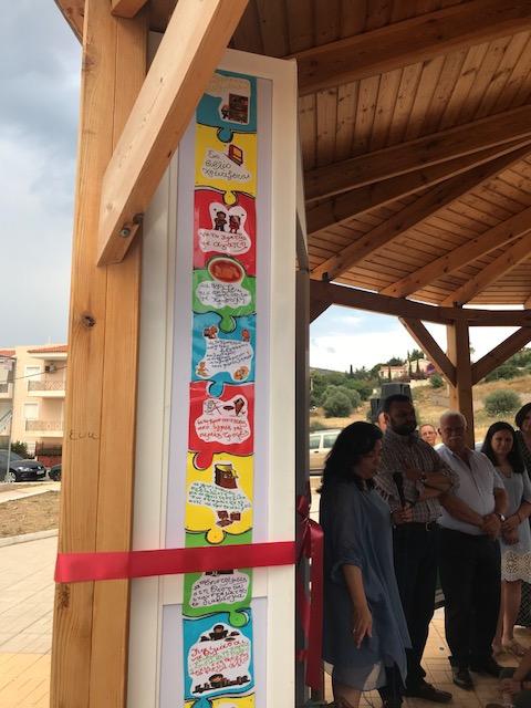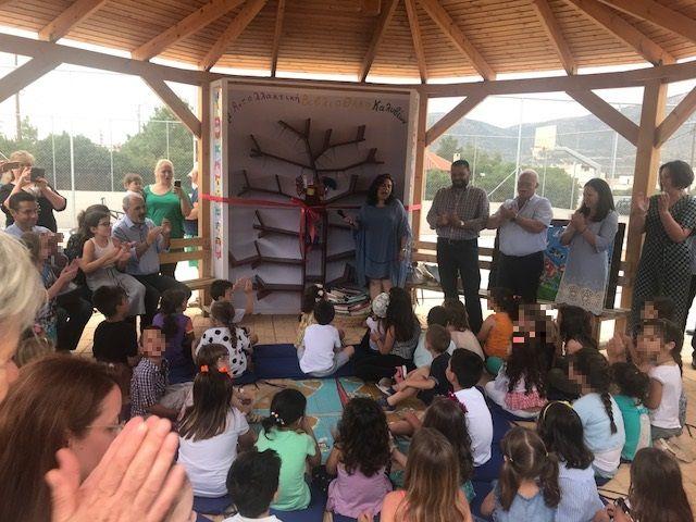 Η υπαίθρια ανταλλακτική βιβλιοθήκη δημιουργήθηκε στο πλαίσιο του εκπαιδευτικού προγράμματος «Νοιάζομαι και Δρω»,το οποίο υλοποιείται από το Μη Κερδοσκοπικό Σωματείο Δεσμός και το Ίδρυμα Λαμπράκη, με στόχο την καλλιέργεια του εθελοντισμού και της αλληλεγγύης, καθώς και την ενίσχυση μιας στάσης ζωής ενεργού πολίτη στους μαθητές.