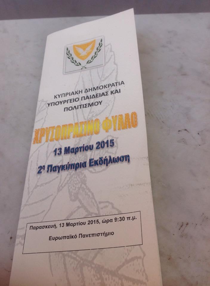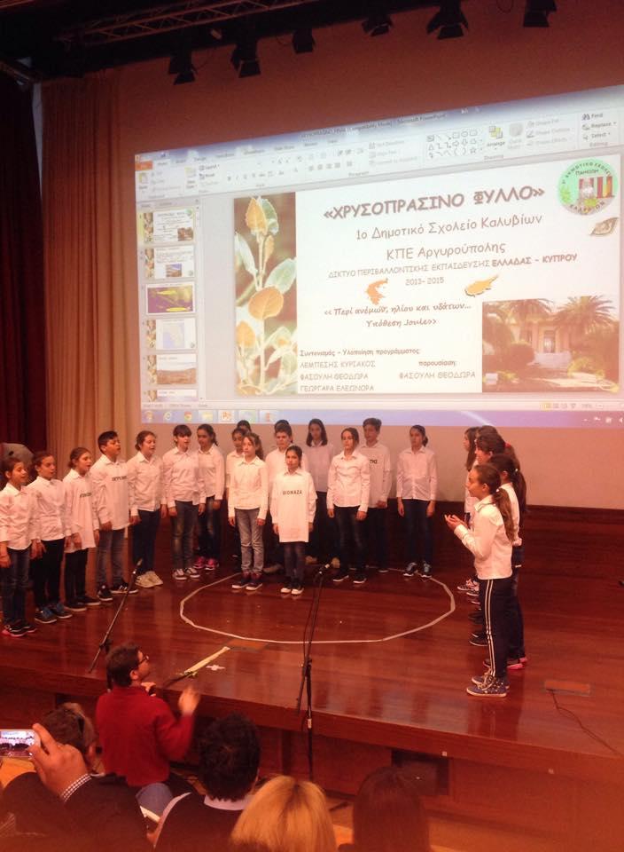 Οι μαθητές των δυο Δημοτικών Σχολείων παρουσίασαν τις εργασίες τους στην κοινή εκδήλωση που πραγματοποιήθηκε την Πέμπτη, 12 Μαρτίου στην αίθουσα εκδηλώσεων του κυπριακού δημοτικού σχολείου σε θέματα περιβαλλοντικής εκπαίδευσης. Την Παρασκευή, 13 Μαρτίου πραγματοποιήθηκε εκδήλωση στο Ευρωπαϊκό Πανεπιστήμιο Κύπρου όπου παρουσιάστηκαν οι εργασίες όλων τα των σχολείων που συμμετέχουν στο πρόγραμμα των Διευθυντών των σχολείων, των εκπαιδευτικών, των Δημάρχων Σαρωνικού και Μέσα Γειτονιάς αλλά και του Υπουργού Παιδείας και Πολιτισμού Κύπρου Δρ. Κώστα Καδή.