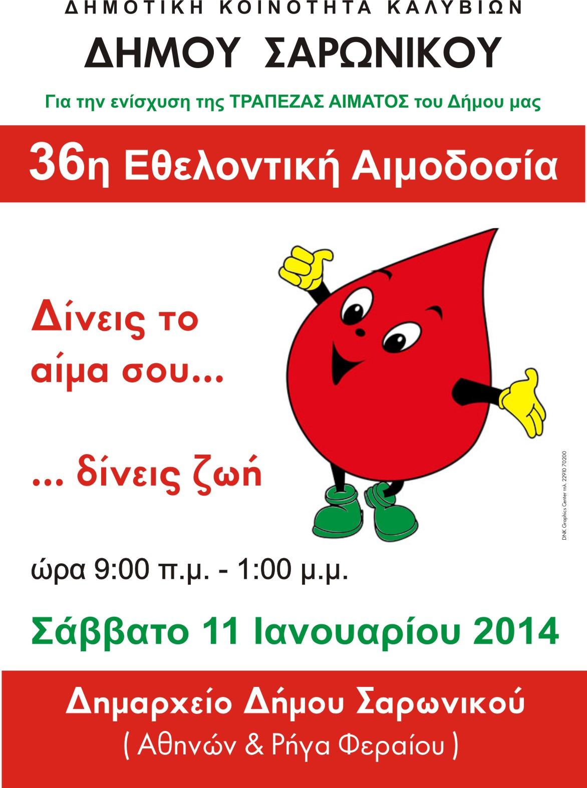 Εθελοντική Αιμοδοσία από τη Δημοτική Κοινότητα Καλυβίων – Σάββατο 11 Ιανουαρίου 2014