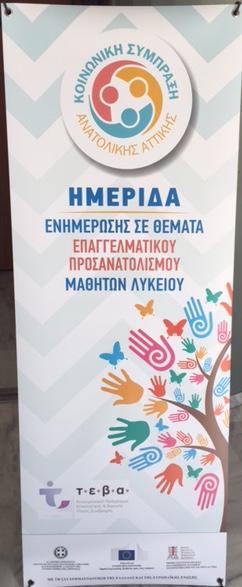 Διαδραστική ημερίδα επαγγελματικού προσανατολισμούγια μαθητές Λυκείου πραγματοποιήθηκε το Σάββατο 4 Μαρτίου στο Αμφιθέατρο του Δήμου Σαρωνικού, στο πλαίσιο των συνοδευτικών δράσεων του Προγράμματος Επισιτιστικής και Βασικής Υλικής Συνδρομής (ΤΕΒΑ), που υλοποιεί η Κοινωνική Σύμπραξη Ανατολικής Αττικής.