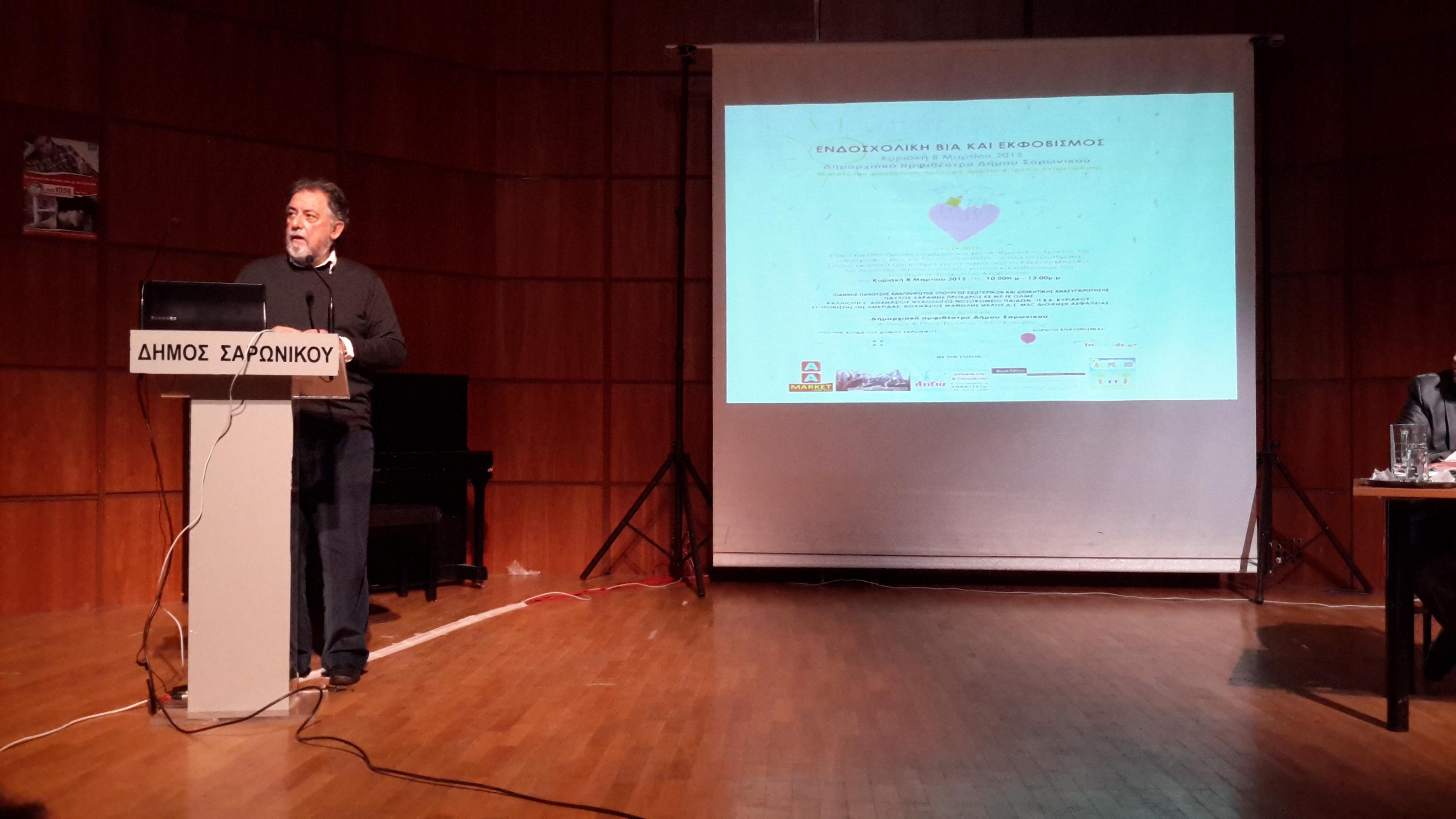 Ενδοσχολική Βία και Εκφοβισμός ήταν το θέμα της ημερίδας που πραγματοποιήθηκε την Κυριακή, 8 Μαρτίου 2015, στο αμφιθέατρο του Δήμου Σαρωνικού, με μεγάλη συμμετοχή κόσμου.