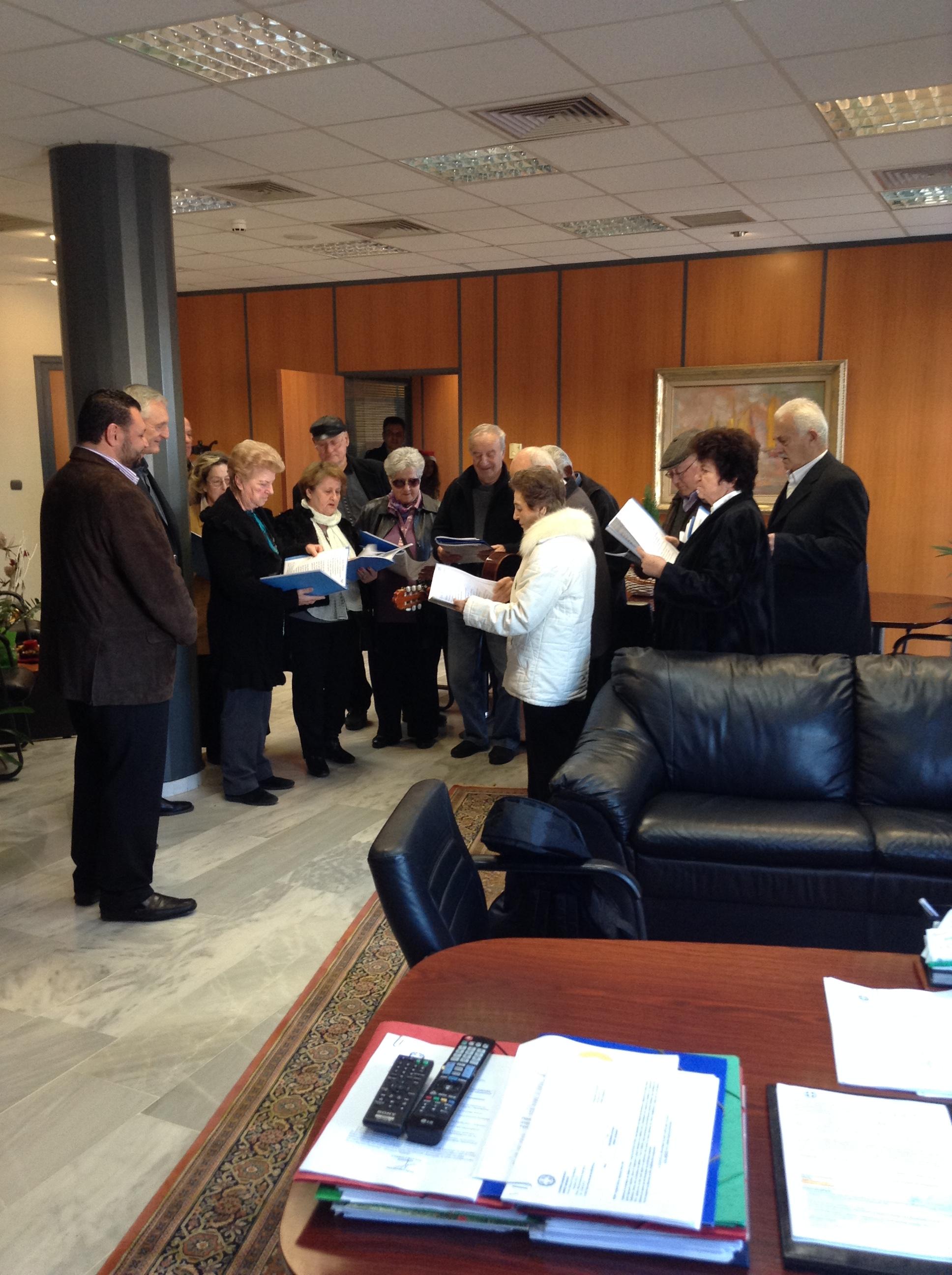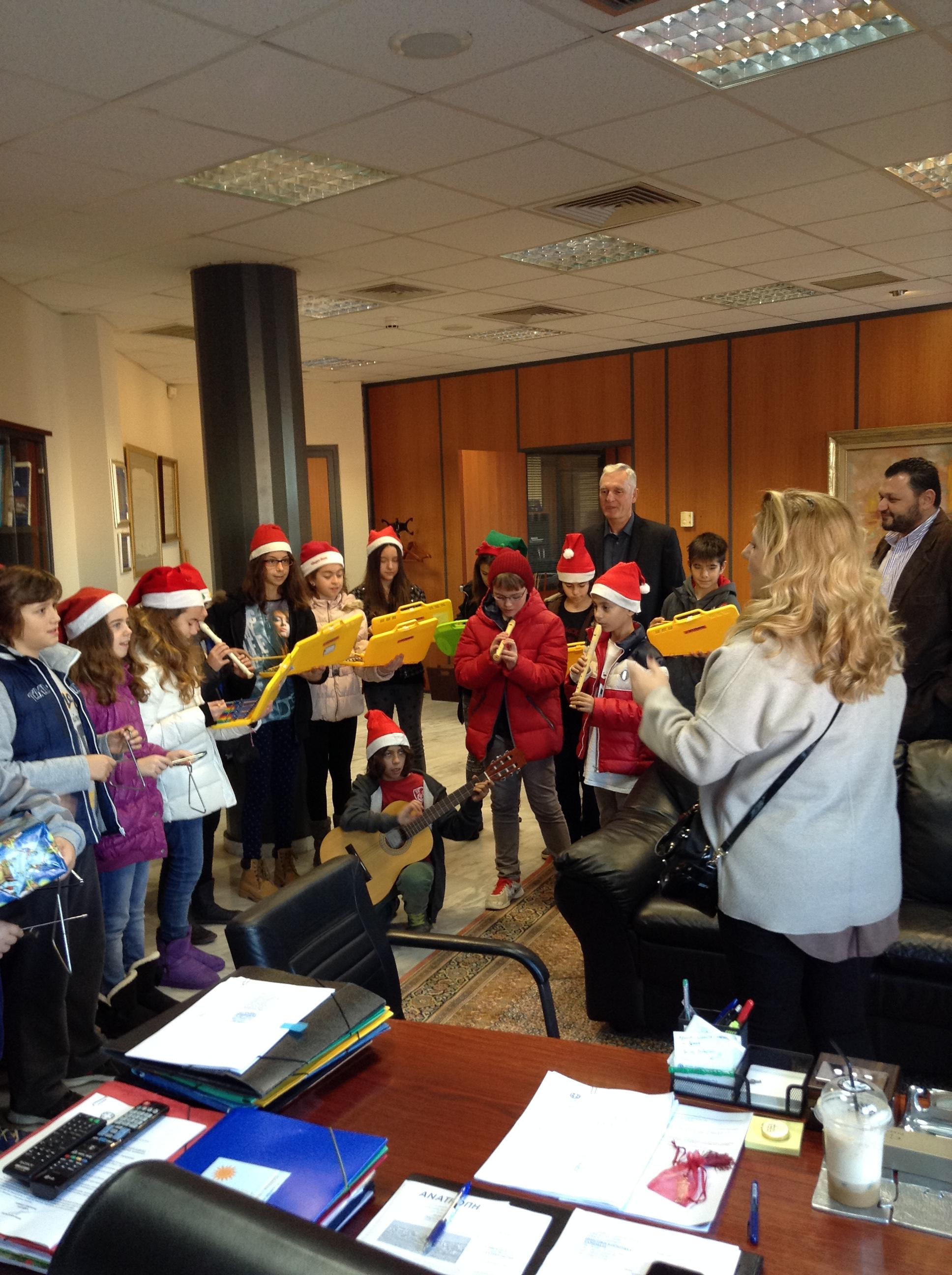 Μαθητές από τα δημοτικά σχολεία, μέλη των Κ.Α.Π.Η., πολίτες αλλά και οι λιλιπούτειοι μαθητές του παιδικού σταθμού «Αγάπηland» ευχήθηκαν στον Δήμαρχο και το προσωπικό του Δήμου ψάλλοντας κάλαντα και παραδοσιακές μελωδίες.