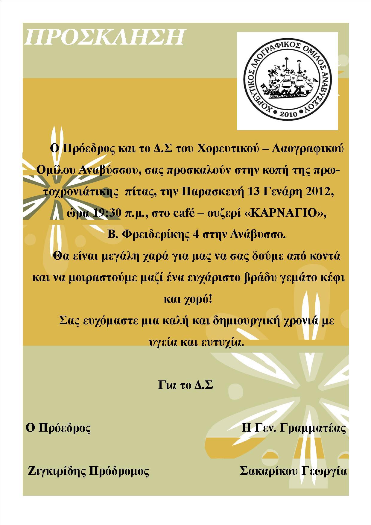 Κοπή πίτας Χορευτικού Λαογραφικού Ομίλου Αναβύσσου