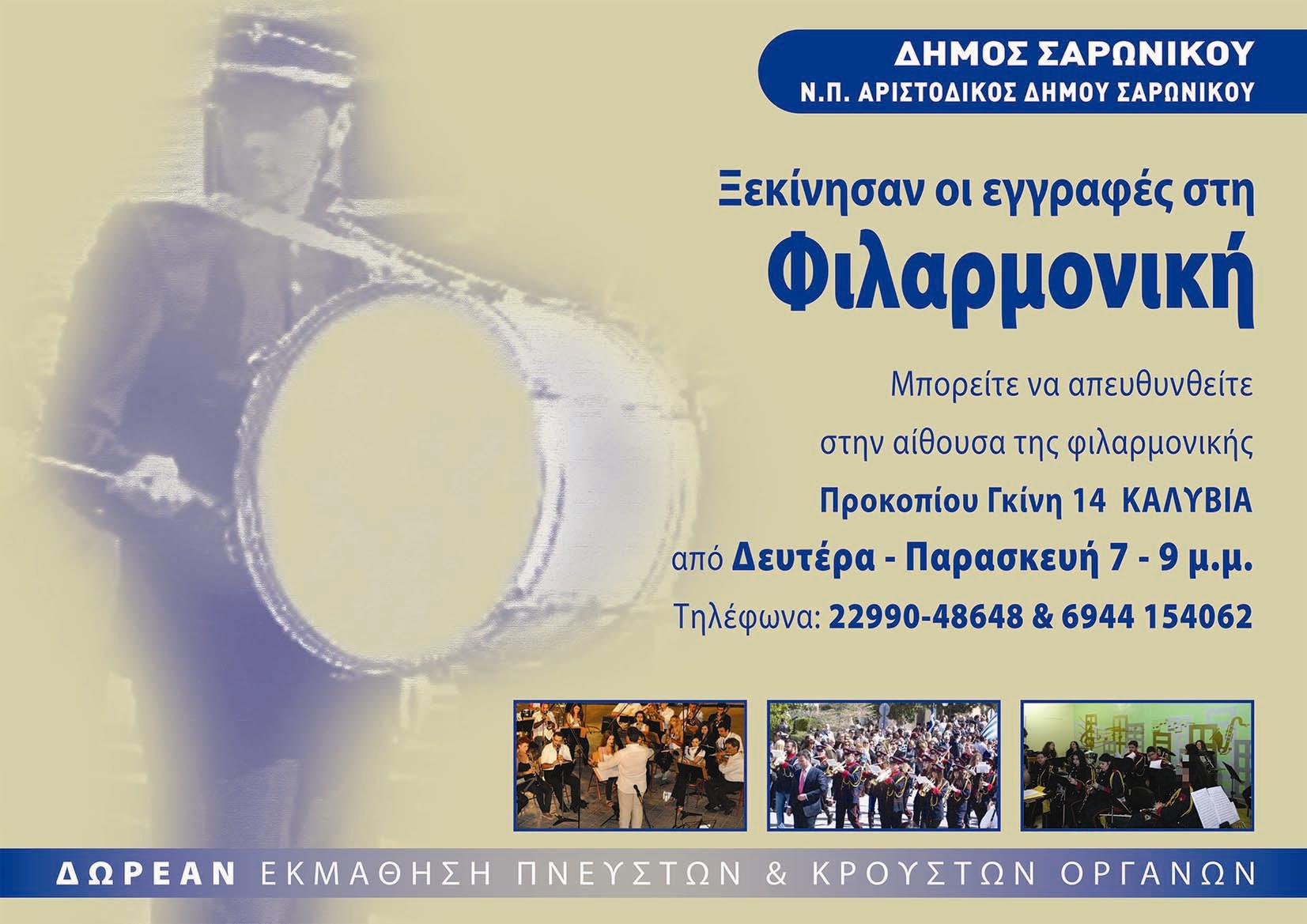 Η Δημοτική Φιλαρμονική και το Τμήμα Ελληνικών Χορών του Ν.Π.Δ. Δ. ΑΡΙΣΤΟΔΙΚΟΣ του Δήμου Σαρωνικού προσφέρουν και φέτος μαθήματα για όλους.