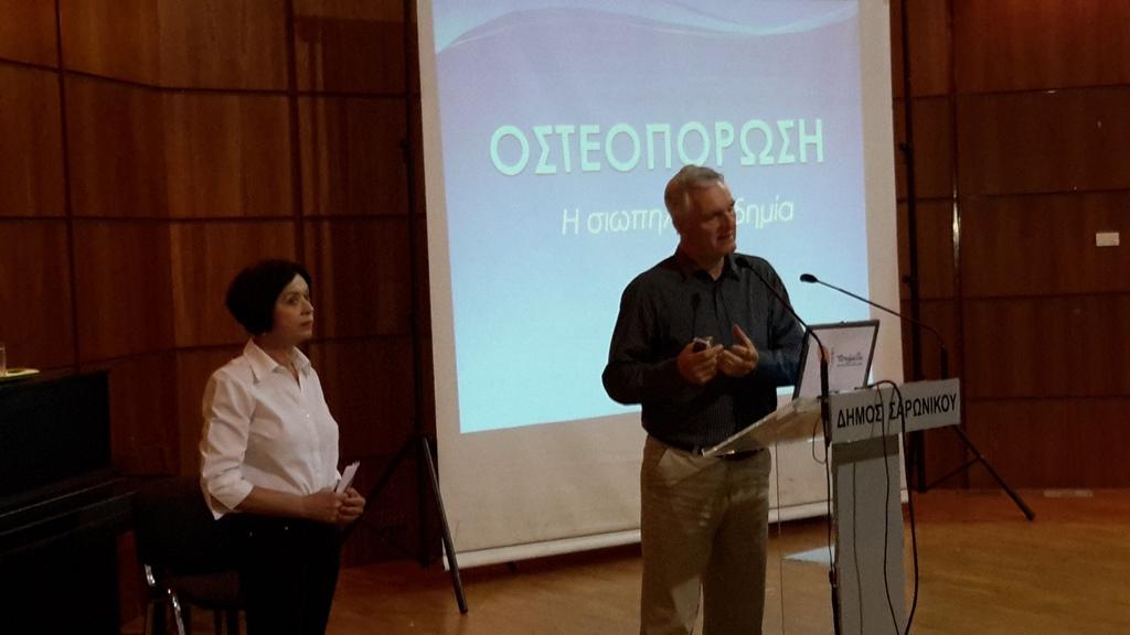 Το απόγευμα της Τετάρτης, 6 Μαΐου 2015, πραγματοποιήθηκε ενημερωτική ημερίδα για τη σιωπηλή νόσο, όπως ονομάζεται στην ιατρική βιβλιογραφία, η οστεοπόρωση δίνοντας στους παρευρισκόμενους όλες τις απαραίτητες πληροφορίες σχετικά με τη διάγνωση, τα αίτια αλλά και τους ενδεδειγμένους τρόπους αντιμετώπισης της ασθένειας.