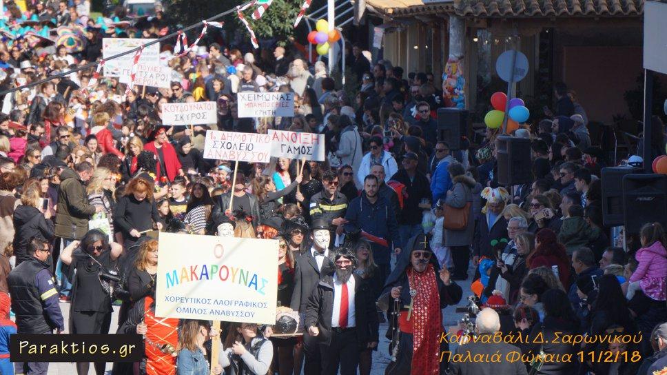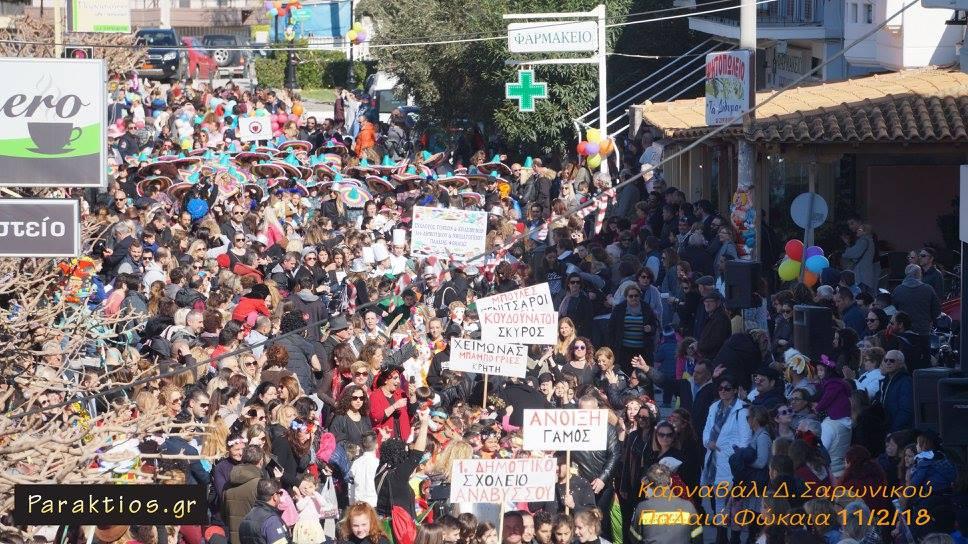 Με χρώματα, φαντασία και κέφι γιόρτασε και φέτος το Καρναβάλι ο Δήμος Σαρωνικού. Την Κυριακή 11 Φεβρουαρίου, κάτοικοι και επισκέπτες διασκέδασαν στην μεγάλη Καρναβαλική Παρέλαση που διοργανώθηκε στην κεντρική Πλατεία της Παλαιάς Φώκαιας. Εκατοντάδες μικροί και μεγάλοι καρναβαλιστές, μεταξύ των οποίων και ένας έφιππος, έδωσαν τον παλμό και ξεσήκωσαν τους περισσότερους από χίλιους παραβρισκόμενους.