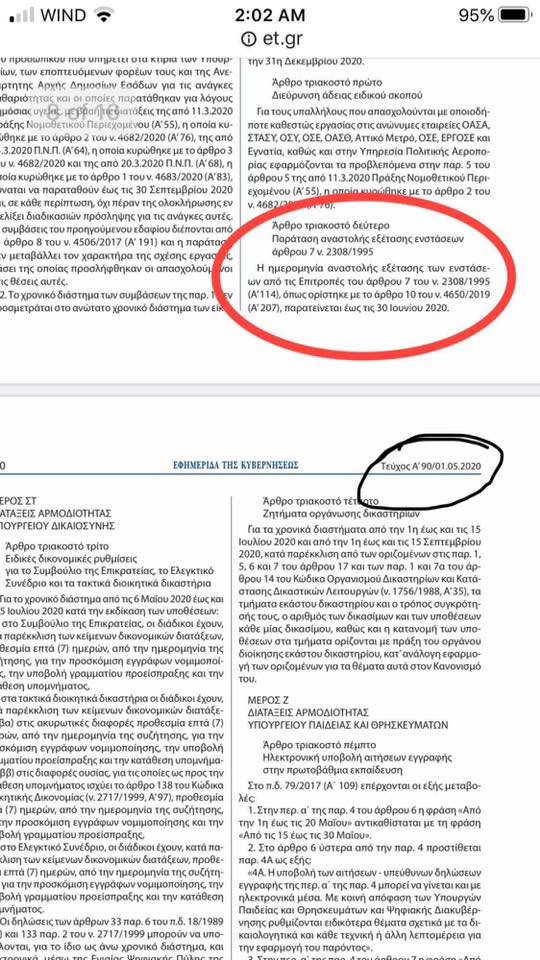 Σε συνέχεια του δελτίου τύπου στις 30/4/2020 σας ενημερώνουμε ότι με το ΦΕΚ Α’ 90/01.05.2020 (άρθρο 32) ανακοινώθηκε η “παράταση αναστολής εξέτασης ενστάσεων άρθρου 7 ν. 2308/1995” που αφορούν στο θέμα της διεκδίκησης από το Ελληνικό Δημόσιο ιδιοκτησιών ιδιωτών στη Σαρωνίδα (σε εφαρμογή της 1151/1872 Δικαστικής Απόφασης) μέχρι τις 30 Ιουνίου 2020.