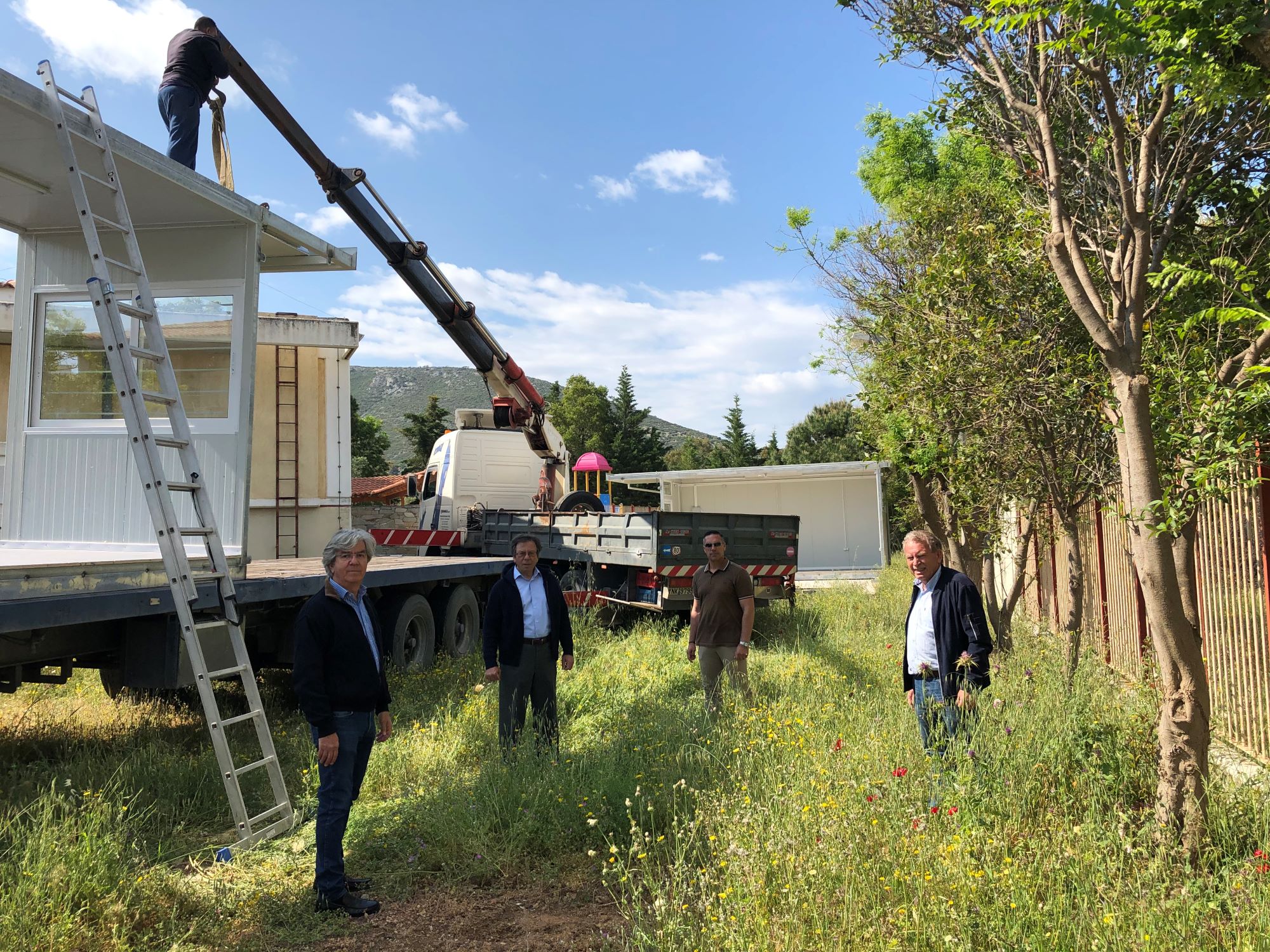 Την ευθύνη για την προμήθεια και την τοποθέτηση της πρώτης από τις δύο αίθουσες είχαν οι Αντιδήμαρχοι Γιάννης Κυριακόπουλος και Βασίλης Μπούτσης.
