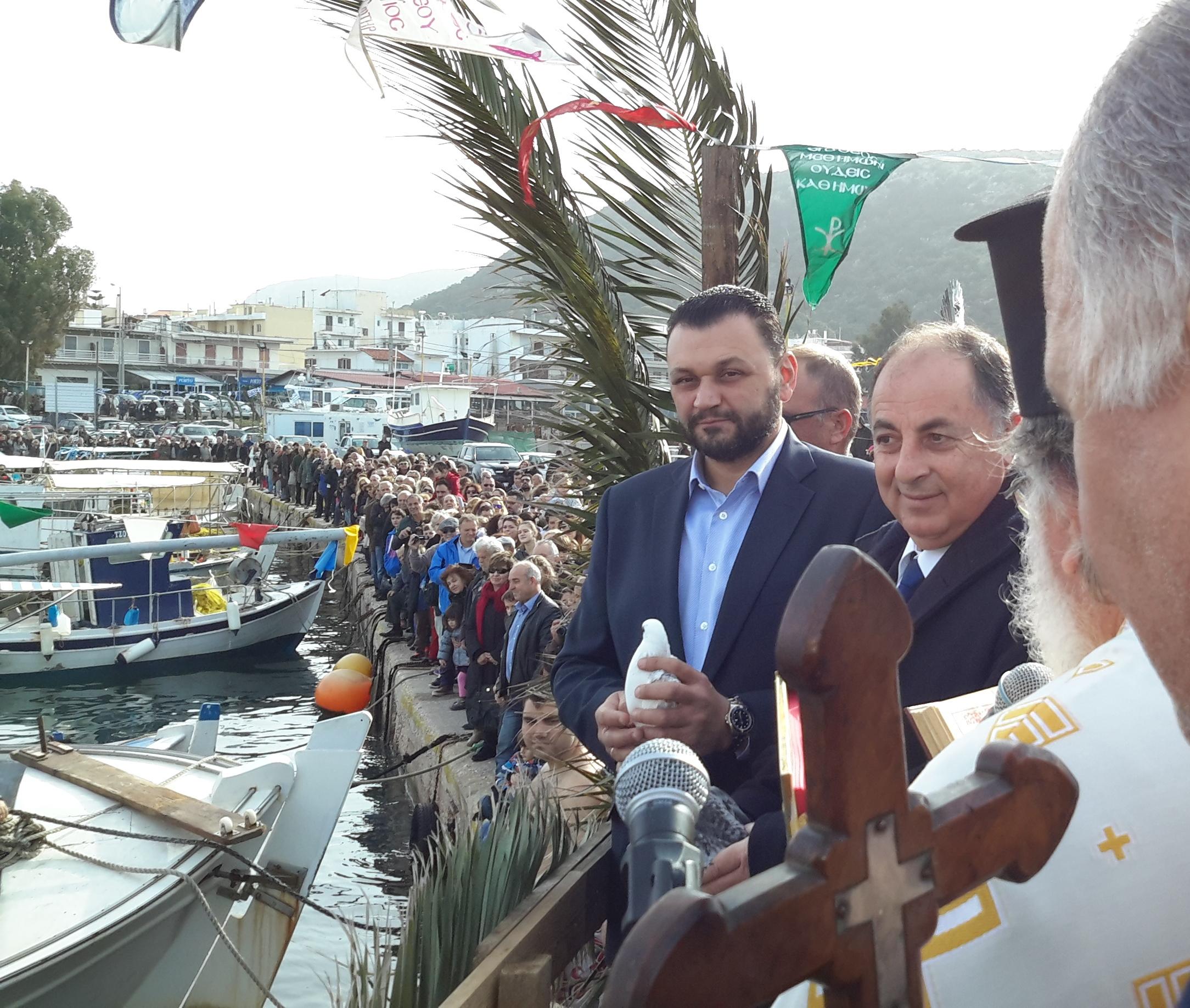 Ο Δήμαρχος κ. Γεώργιος Σωφρόνης συμμετείχε στις εκδηλώσει για τον εορτασμό των Θεοφανείων στην Παλαιά Φώκαια. Αφού ολοκληρώθηκε η θεία λειτουργία στον Ιερό Ναό Αγίας Ειρήνης Παλαιάς Φώκαιας, οι ιερωμένοι, οι αρχές του τόπου και οι πιστοί, υπό τους ήχους της Δημοτικής Φιλαρμονικής, σχημάτισαν πομπή και ακολούθησαν τον δρόμο προς τη θάλασσα. Στο γραφικό λιμανάκι της Παλαιάς Φώκαιας οι αλιείς με τις βάρκες τους αλλά και οι μικροί αθλητές της ιστιοπλοΐας είχαν ήδη ανοιχθεί στη θάλασσα. Σύμφωνα με την ιεροτελεστία της χριστιανοσύνης ο ιερέας τέλεσε τον αγιασμό και στη συνέχεια έριξε το σταυρό στη θάλασσα για να πραγματοποιηθεί ο αγιασμός των υδάτων. Περισσότεροι από είκοσι βουτηχτάδες πήδηξαν στα παγωμένα νερά κατά την κατάδυση του Σταυρού, προκειμένου να λάβουν την χάρη και την ευλογία του.