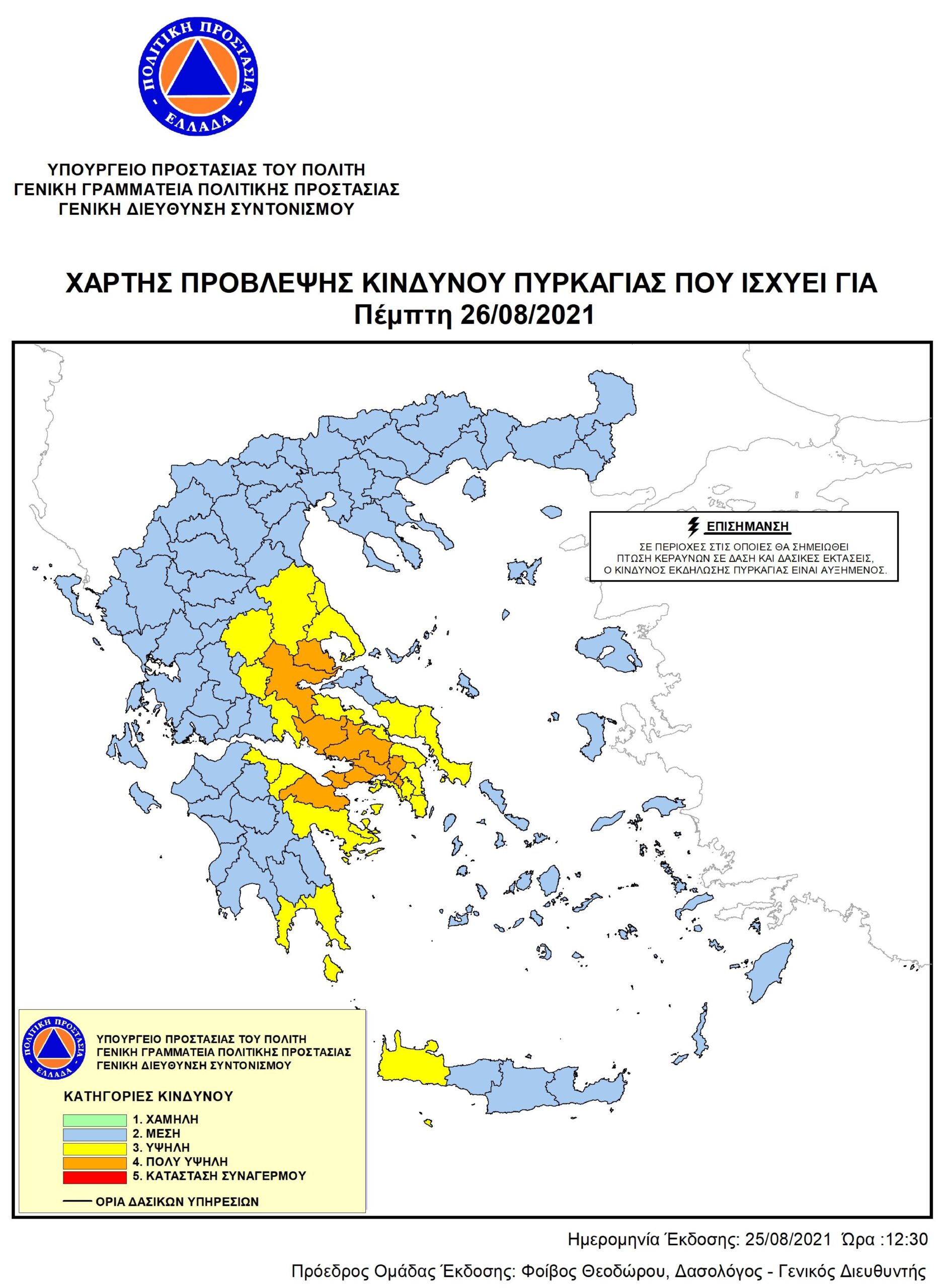Προσοχή – Πολύ υψηλός κίνδυνος πυρκαγιάς (κατηγορία κινδύνου 4) την Πέμπτη 26 Αυγούστου.