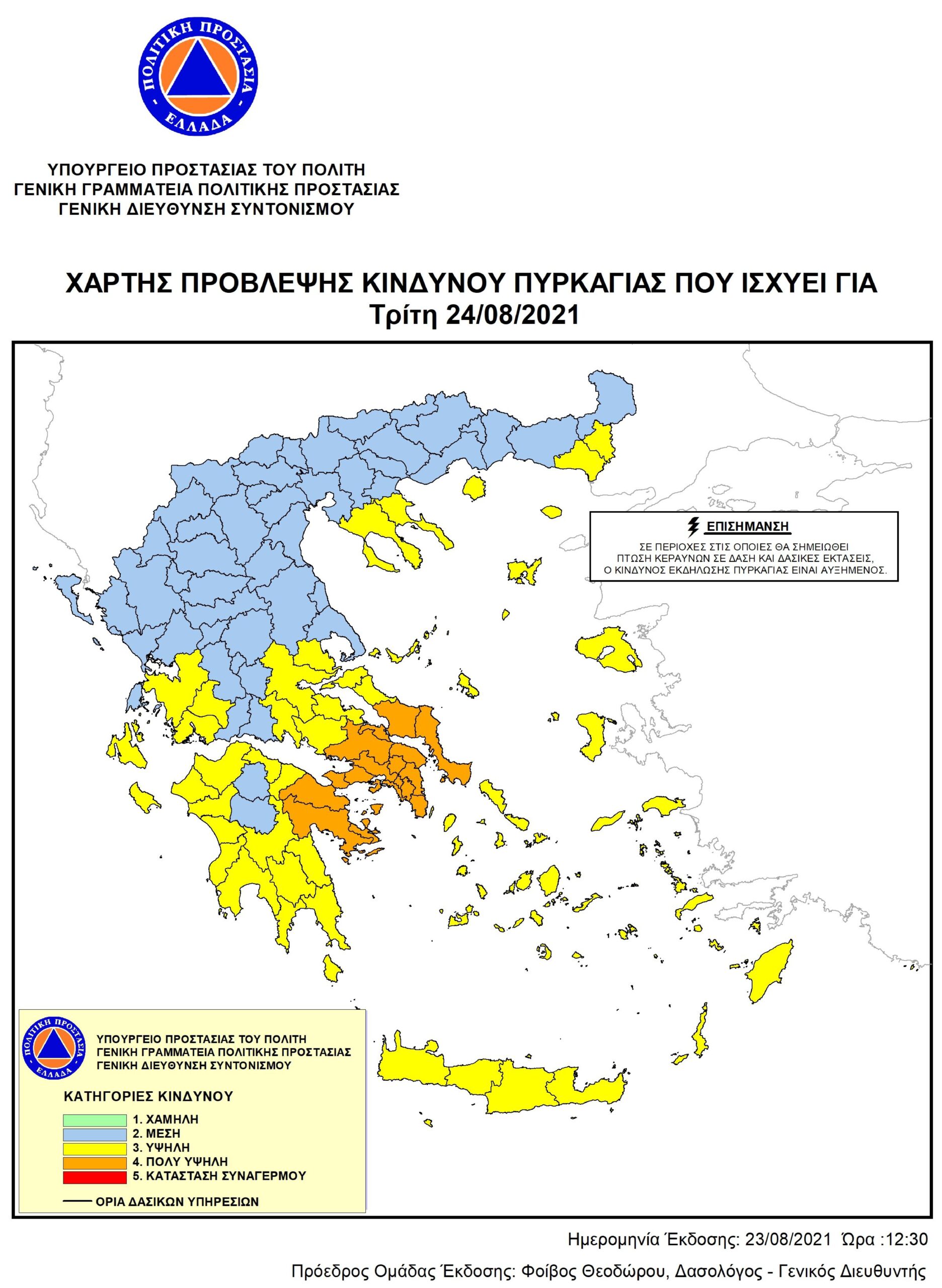 Προσοχή – Πολύ υψηλός κίνδυνος πυρκαγιάς (κατηγορία κινδύνου 4) την Τρίτη 24 Αυγούστου.