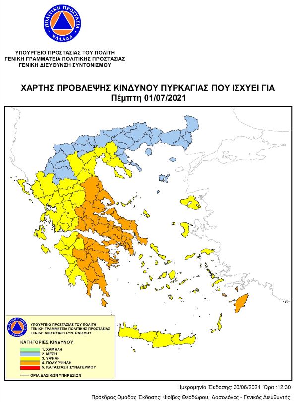 Προσοχή – Πολύ υψηλός κίνδυνος πυρκαγιάς (κατηγορία κινδύνου 4) την Πέμπτη 1η Ιουλίου.