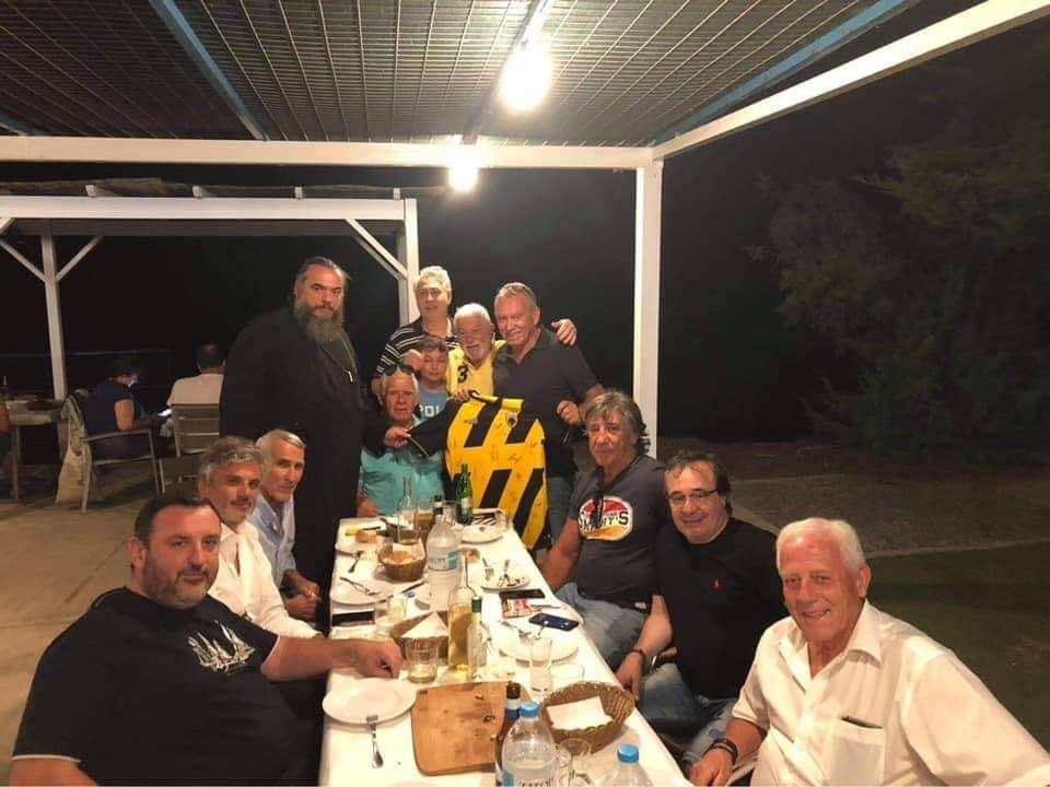 Ο Δήμαρχος Πέτρος Φιλίππου και ο πρόεδρος του Νομικού Προσώπου ''Αριστόδικος'' Νίκος Πουλόπουλος υποδέχτηκαν χτες το βράδυ στη δημοτική επιχείρηση ''Κιόσκι'', αντιπροσωπεία των βετεράνων της ΑΕΚ, αποτελούμενη από τον πρόεδρο Στέλιο Σεραφείδη, τον Θωμά Μαύρο, τον Μιχάλη Σιμιγδαλά και το επίτιμο μέλος του συνδέσμου (πρώην Κοινοτάρχη Πολυδενδρίου) Θανάση Σακίρη. Παρόντες ήταν και φίλοι της ΑΕΚ από την περιοχή.