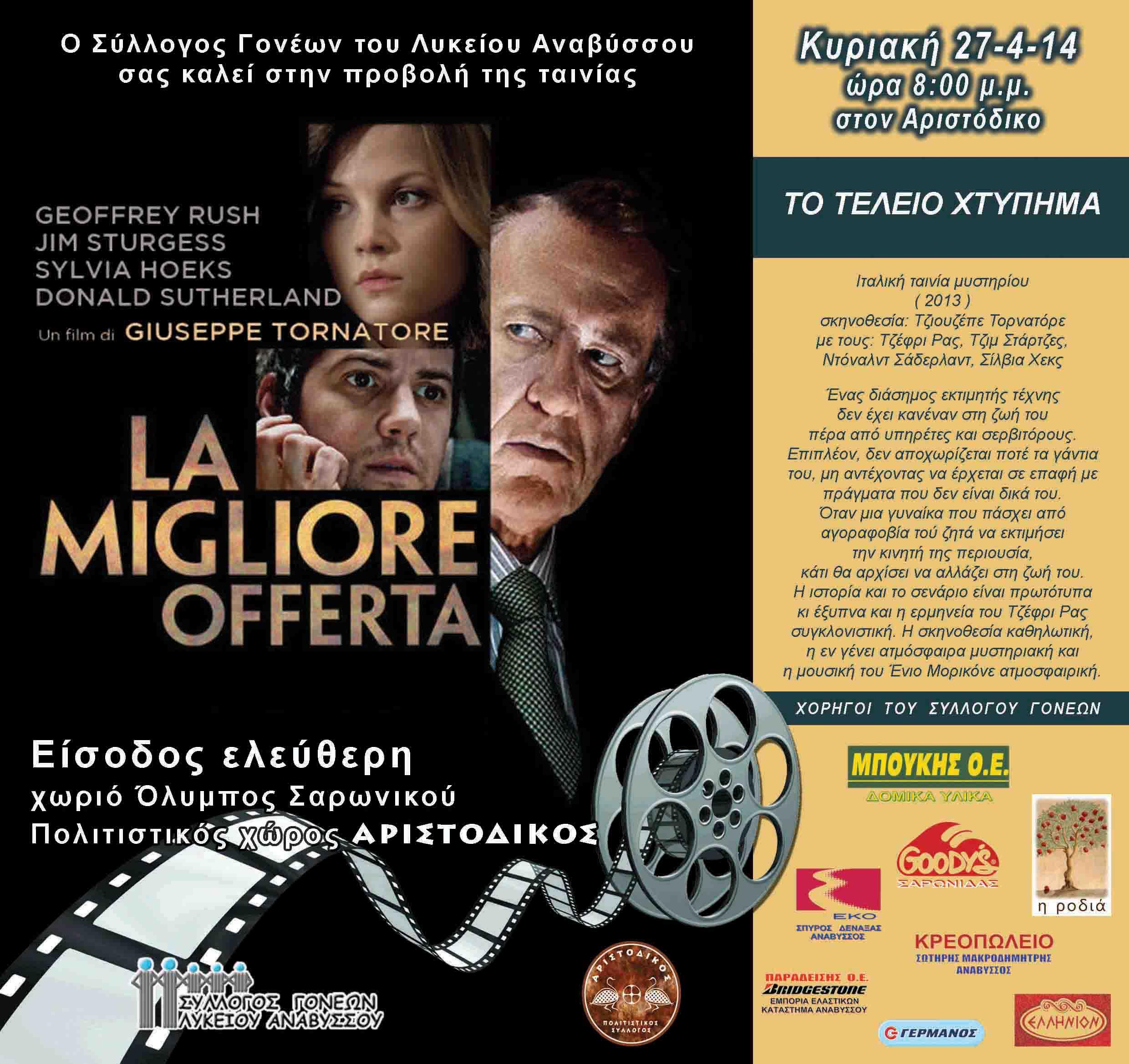Προβολή ταινίας από τον Σύλλογο Γονέων Λυκείου Αναβύσσου 27-4-2014