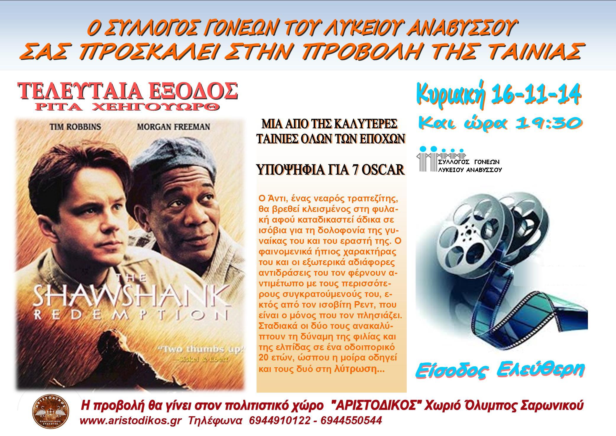 Προβολή της ταινίας “Τελευταία έξοδος” την Κυριακή 16-11-2014 στον Πολιτιστικό Χώρο “Αριστόδικος”
