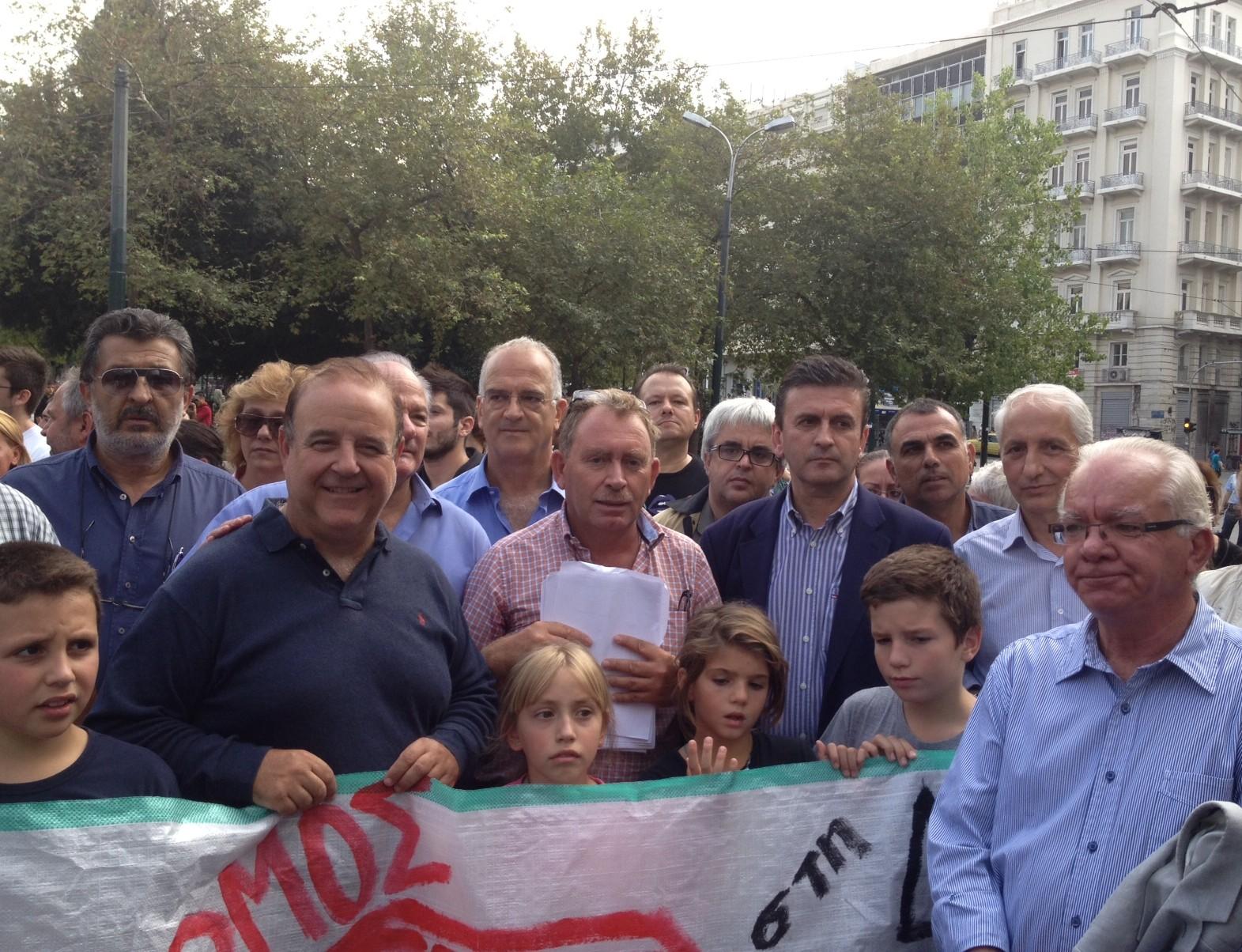 Νωρίτερα οι συγκεντρωμένοι είχαν μεταβεί στην Πλατεία Κλαυθμώνος, όπου οι δήμαρχοι επέδωσαν το ψήφισμα διαμαρτυρίας στον Υπουργό Εσωτερικών κ. Ευριπίδη Στυλιανίδη.