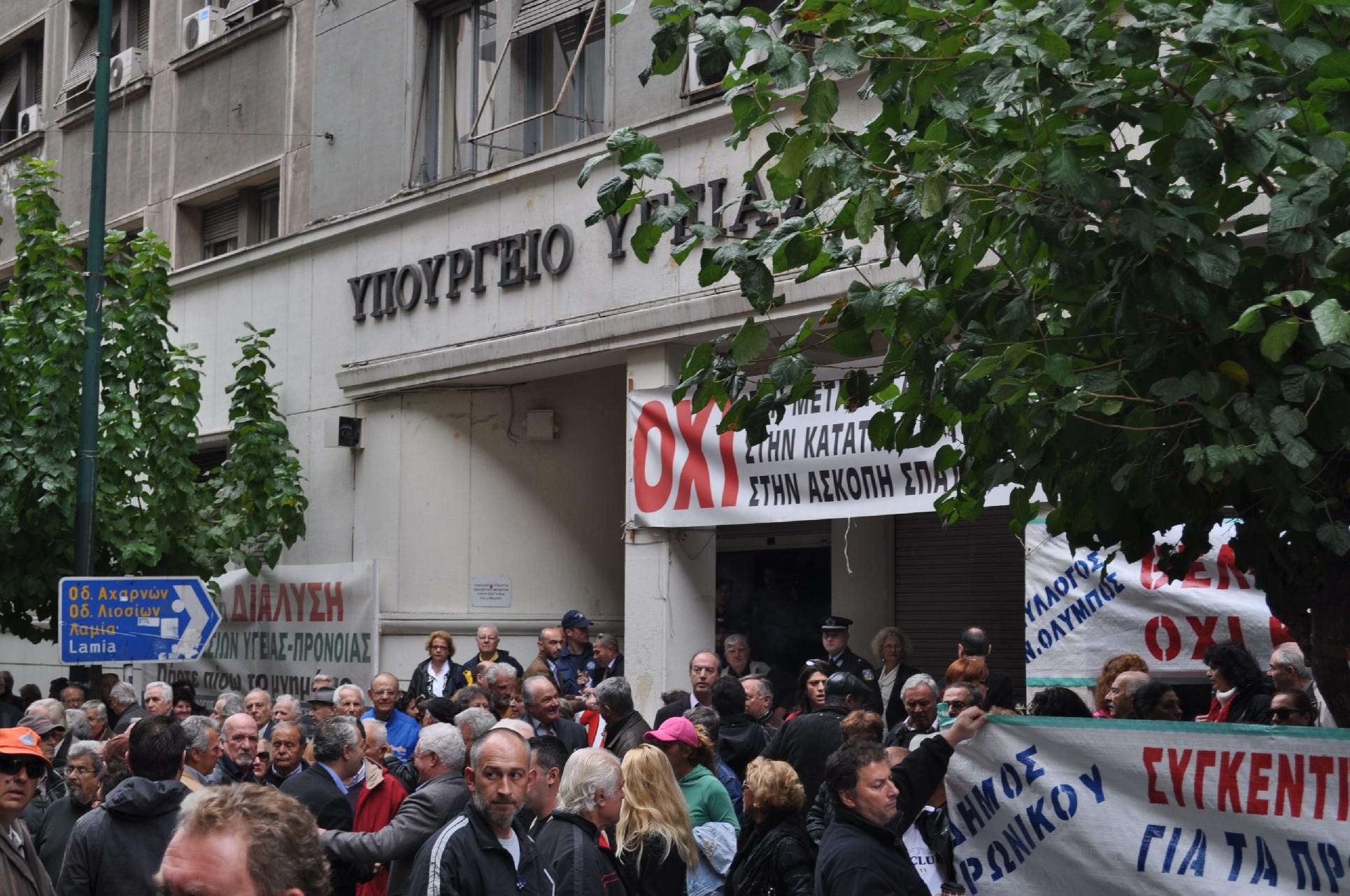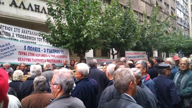 Με κεντρικό σύνθημα «5 πόλεις – 3 γιατροί – Τέρμα στην αδράνεια και την αδιαφορία – Θέλουμε γιατρούς και πρωτοβάθμια υγεία», η Δημοτική Αρχή Σαρωνικού, τα μέλη της Συντονιστικής Επιτροπής για το Κέντρο Υγείας, τοπικοί φορείς και σύλλογοι, εργαζόμενοι στο Δήμο Σαρωνικού αλλά και κάτοικοι των πέντε κοινοτήτων που τον αποτελούν, περίπου 300 άτομα, συγκεντρώθηκαν το πρωί της Τετάρτης 28 Νοεμβρίου στο κτίριο του Υπουργείου Υγείας και Κοινωνικής Αλληλεγγύης στην οδό Αριστοτέλους για να εκφράσουν την έντονη διαμαρτυρία τους και την αγανάκτησή τους για τα χρονίζοντα προβλήματα λειτουργίας του Κέντρου Υγείας Καλυβίων.