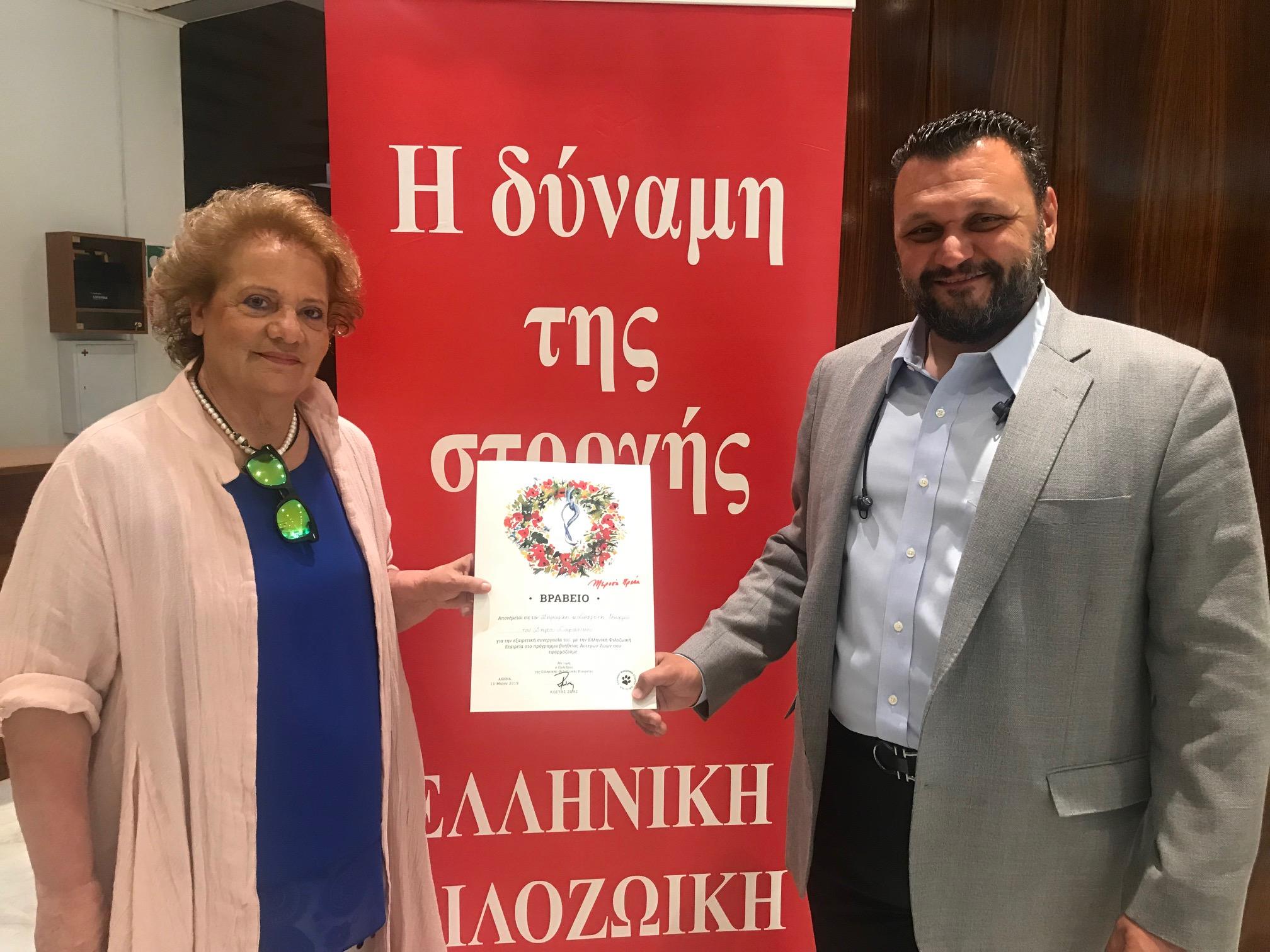 Βράβευση του Δημάρχου Σαρωνικού, για το έργο του Δήμου στον τομέα της προστασίας των αδέσποτων ζώων